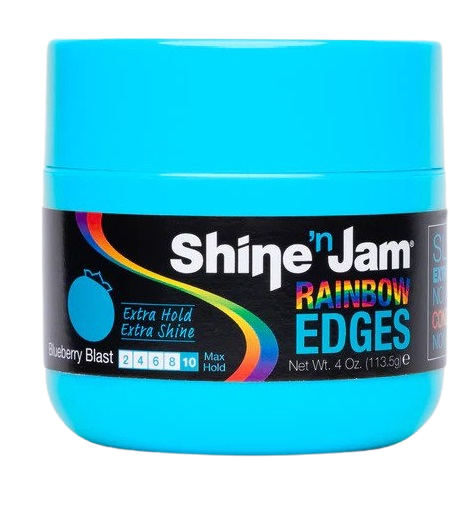 Shine ‘n Jam Rainbow Edges Blueberry Blast is een veelzijdige haargel speciaal ontworpen om je randen en babyhaartjes op hun plaats te houden met een stevige hold. Deze gel is verrijkt met de heerlijke geur van blauwe bessen, waardoor je haar niet alleen in stijl blijft, maar ook lekker ruikt. Belangrijkste kenmerken: