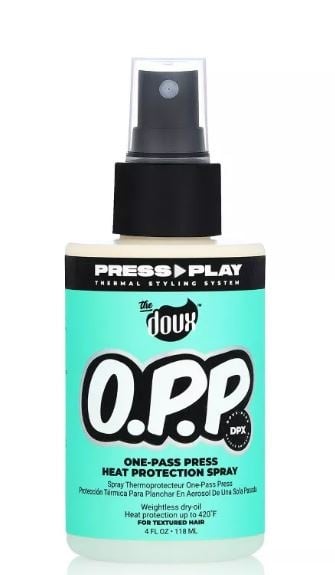 De Press Play O.P.P. One Pass Heat Protectant Spray van The Doux is een essentiële, lichtgewicht spray die het haar beschermt tegen de schade van hete stylingtools. Deze formule creëert een onzichtbare barrière, vermindert de droogtijd van het föhnen en zorgt voor een zijdezachte, gladde afwerking met ongelooflijke glans. Het helpt ook bij het tegengaan van pluis en het verlengen van de levensduur van sleek en geföhnde stijlen.